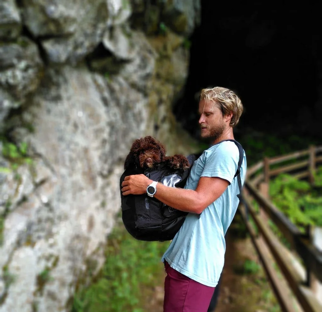 Not sure, if the portrait-mode was made for these types of wide shots, but I love the funky result. This picture is from a hike after the contest in Spain. We got a little lost and Puma, our puppy ended up taking a break in my backpack.