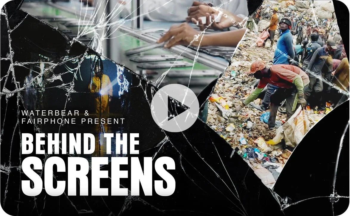 Fairphone & Waterbear present “Behind the Screens”. Unveil the truth behind your screen with this immersive documentary, exposing the reality of creating our most personal devices. Join the movement to disrupt the smartphone industry and create a more sustainable future, one phone at a time.