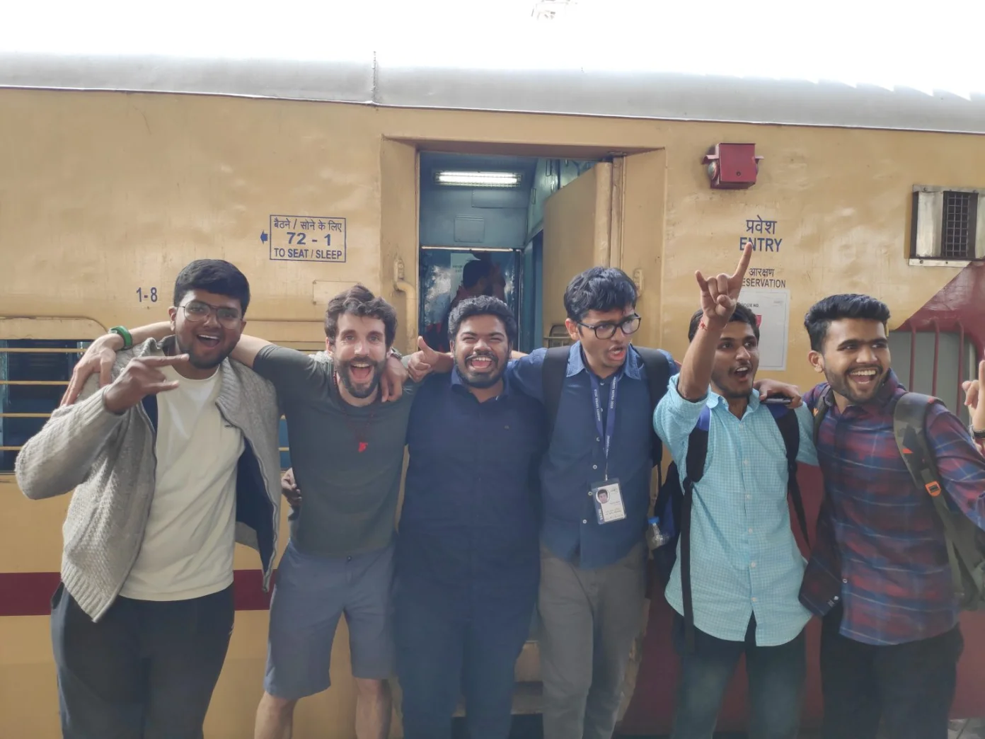 This is one of my favorite photos. Last December, I took a train with 400 aspiring Indian social entrepreneurs. We traveled for two weeks all around India to meet role models that have created solutions to tackle climate and social issues in the country. This project is called Jagriti Yatra. Here is the team I shared my amazing journey with (from left to right): Sadai, myself, Hemanth, Shoven, Nimesh and Powen.