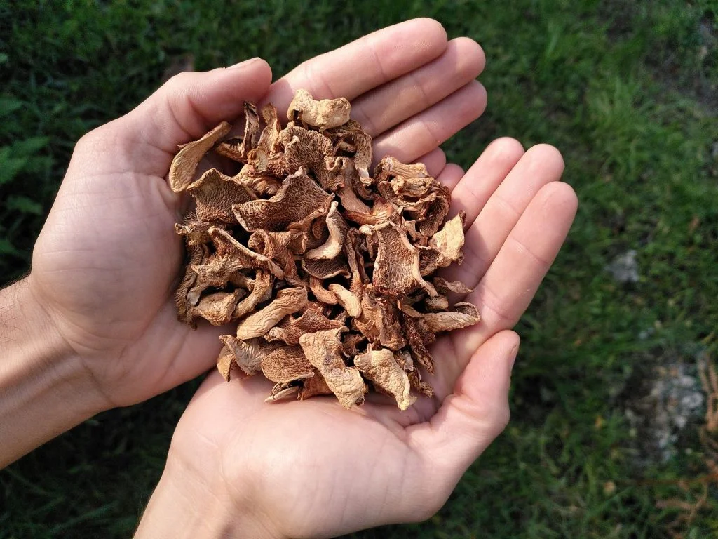 Autumn is always a beautiful season. Not just because of the colorful landscapes but also the treasures that you can find in the forest. Here we show a handful of home-dried hedgehog mushrooms foraged in the last days.