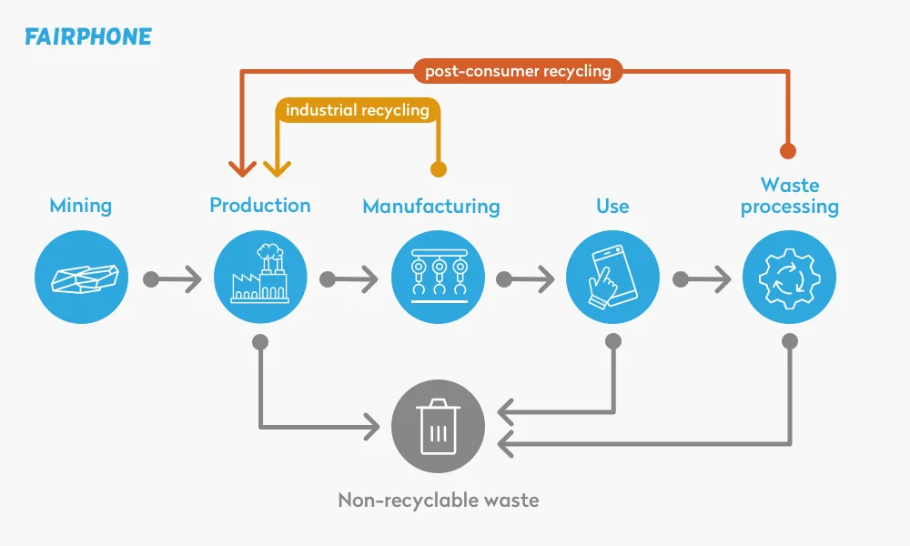 It’s not new news that we encourage our community to use their phones as long as possible – the longer a product is used, the fewer new products we need to manufacture and the fewer resources we use. However, we are aware that eventually all life must come to an end and that includes smartphones when they can not be reused anymore. Only in that case does Fairphone send those phones to a responsible recycling partner to recover as many resources as possible. It’s important to note that in the best-case scenario, only 30-50% of materials are able to be recovered – causing us to lose valuable resources – when we opt for recycling instead of reusing.