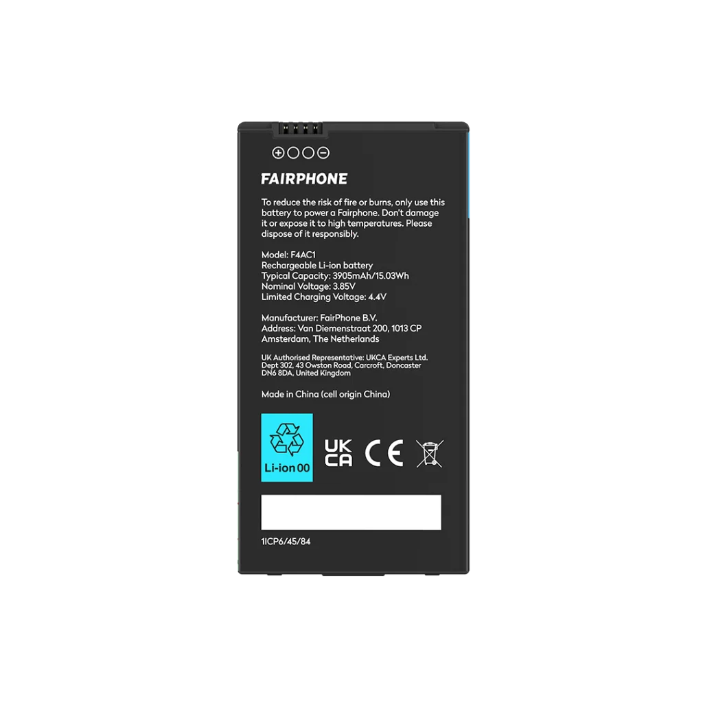 The original Fairphone 4 battery combines all-day power with fair materials. Long-lasting all-around.