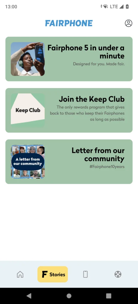 Explore the new Stories tab and scroll through a dedicated content feed customized to your Fairphone journey so far. Watch handy tutorials designed to help you keep your phone for longer. Celebrate the many milestones you cross as you keep the phone for longer. Discover how your extended usage of Fairphone is making an impact on the world. We are a community of 400,000+ Fairphone users now, so that’s a lot of impact! You will also be the first to know about all our company updates, product announcements and other developments. Information overload? Tweak your notification preferences and set alerts for only your favorite topics.